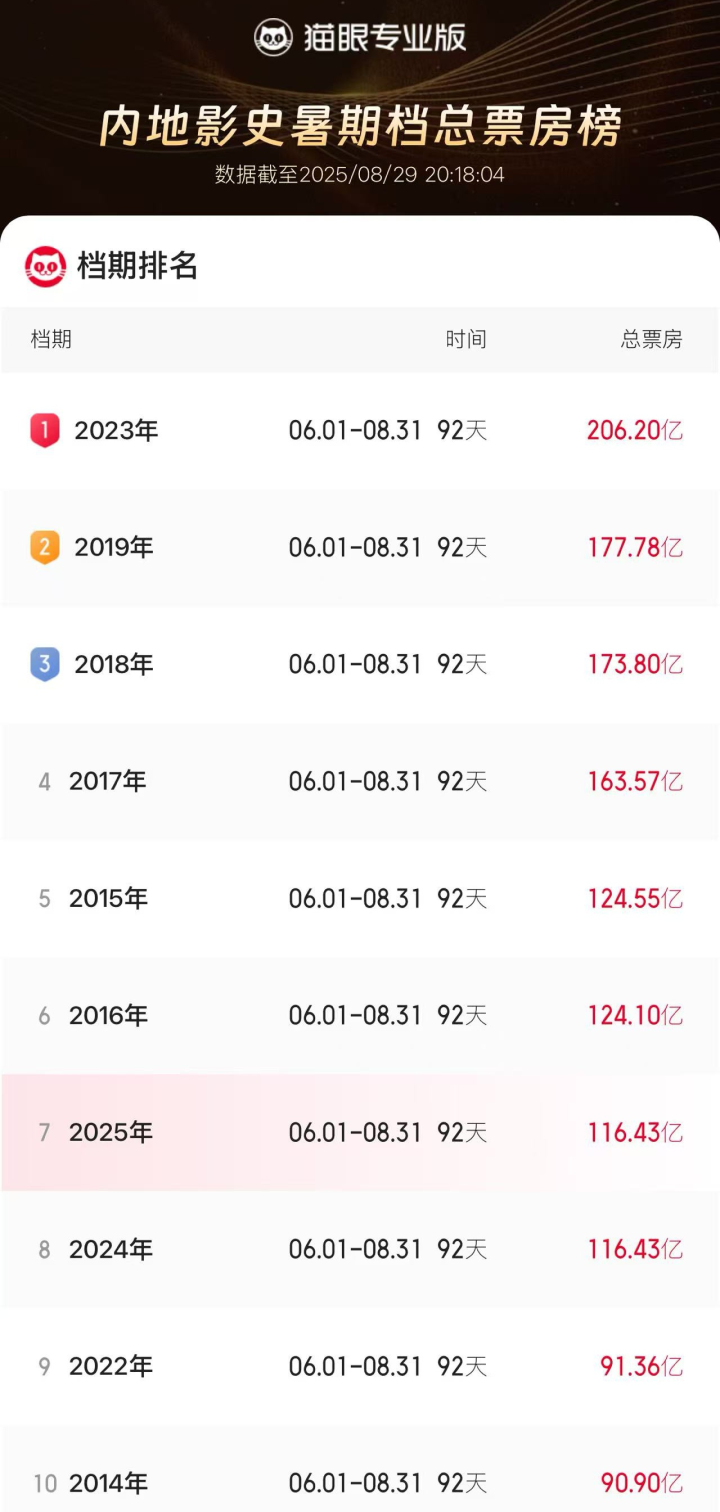2025年暑期档即将收官,总票房超去年。
